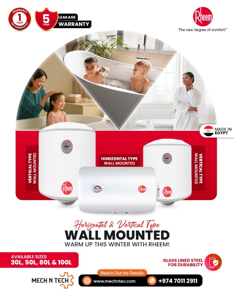 Mech N Tec is one of the top water heater suppliers in Qatar, providing durable,energy-efficient, and high-performance hot water solutions for homes and commercialspaces. Our range of Rheem water heaters is designed to deliver instant heating, longlifespan, and reliable performance suited for Qatar’s climate. Premium Water Heaters for Qatar Homes We supply high-quality Rheem heaters […]